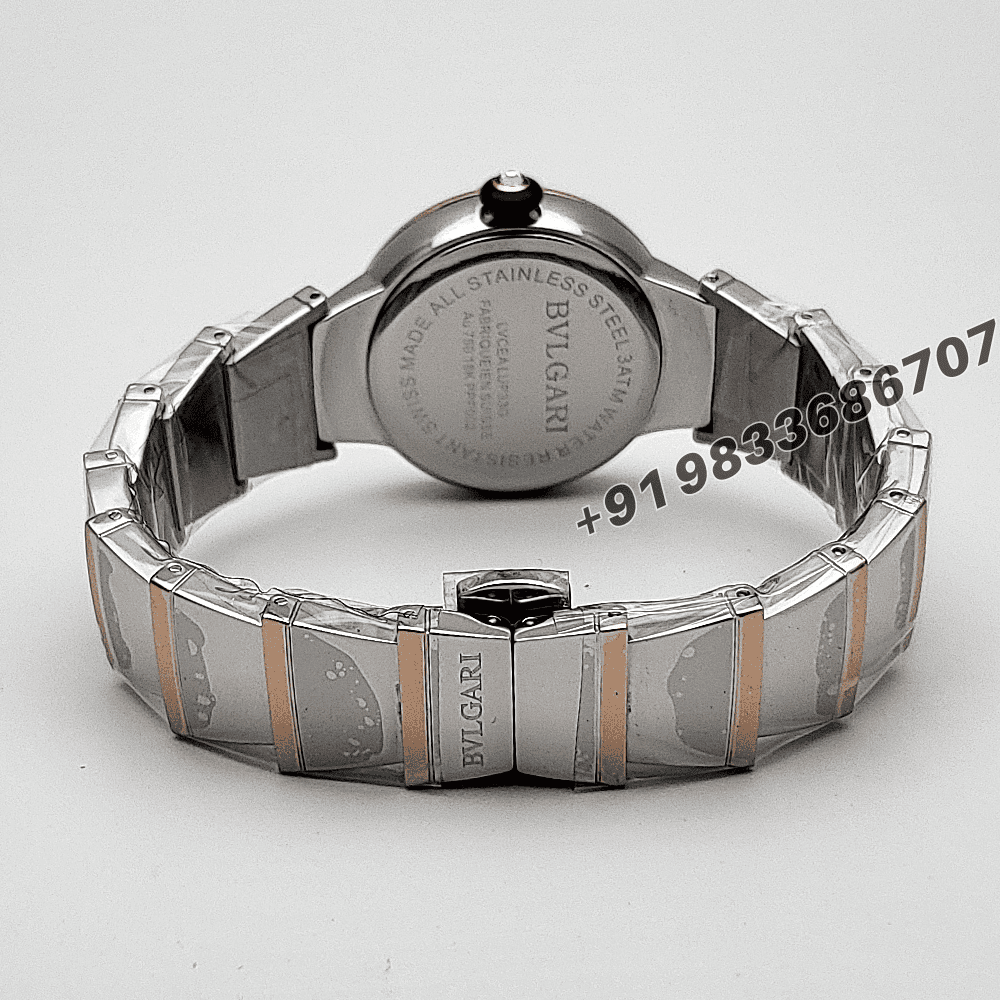 Bvlgari Lvcea Stainless Steel and Rose Gold Black Dial High Quality Women’s Watch