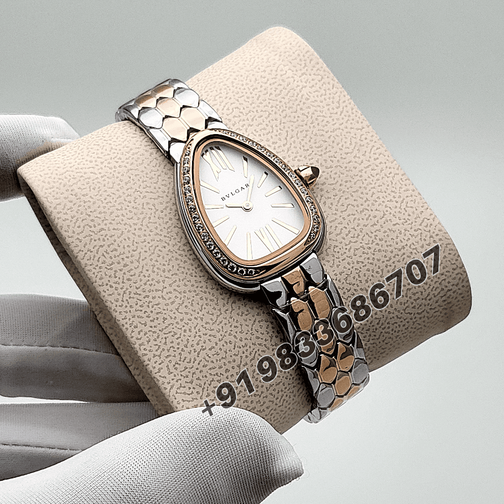 Bvlgari Serpenti Seduttori Rose Gold and Stainless Steel Diamond Set White Dial High Quality Women’s Watch