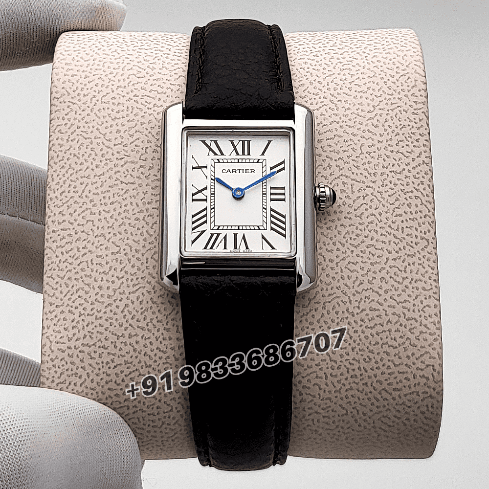 Cartier Tank Louis Stainless Steel White Dial Black Leather Strap High Quality First Copy Women’s Watch