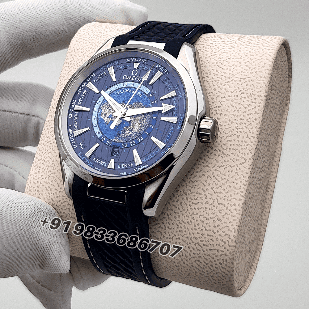 Omega Seamaster Aqua Tera World Time Blue Dial Rubber Strap High Quality Swiss Automatic Watch