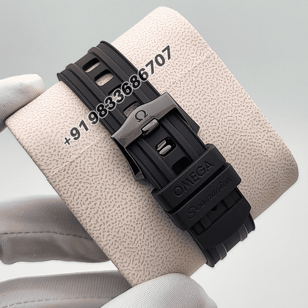 Omega Seamaster Diver 300M Black Ceramic On Rubber Strap Black Dial 43.5mm Exact 1:1 Top Quality Super Clone Replica Swiss ETA 8806 Automatic Movement Watch