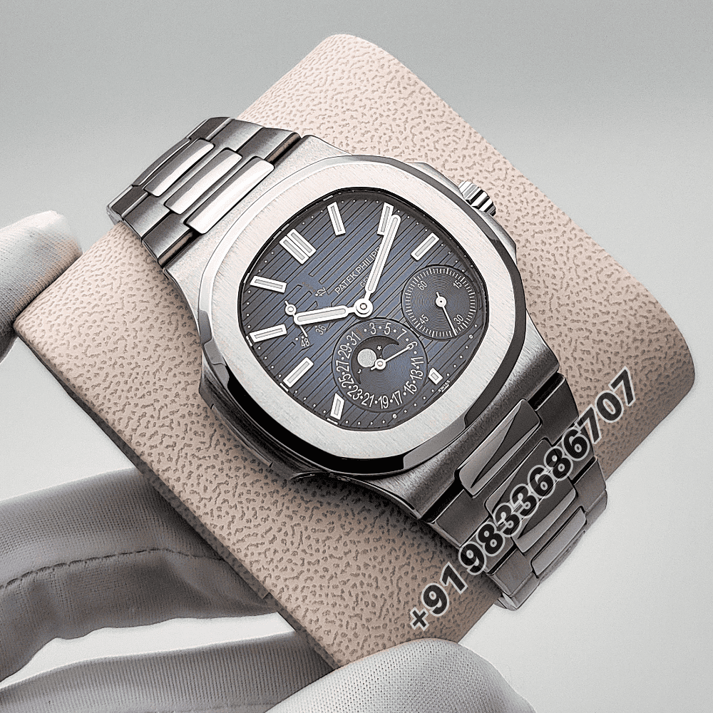 Patek Philippe Nautilus Moon Phase Power Reserve 5712/1A-001 Black-Blue Dial 40mm Exact 1:1 Top Quality Super Clone Swiss ETA 240 PS IRM CLU Automatic Movement Watch