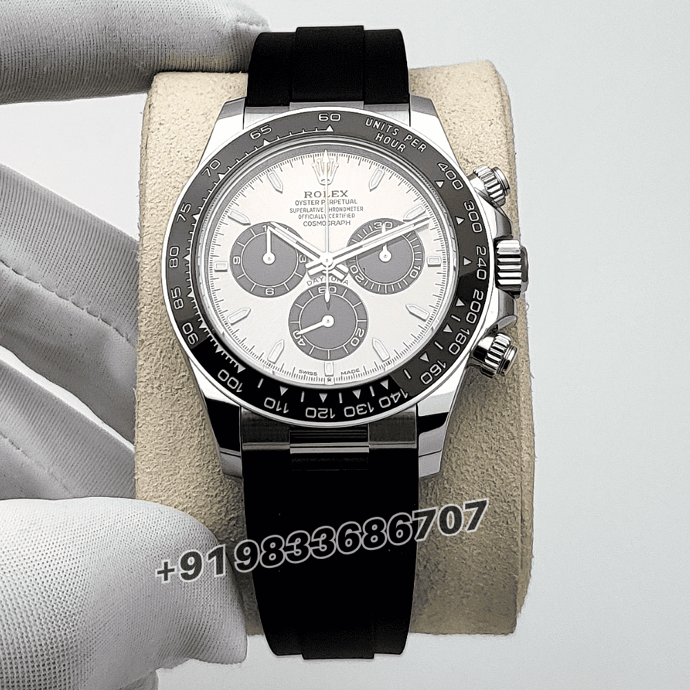 Rolex Cosmograph Daytona 18kt White Gold Oysterflex Steel Dial 40mm Exact 11 Top Quality Super Clone Replica Swiss ETA 4131 Automatic Movement Watch